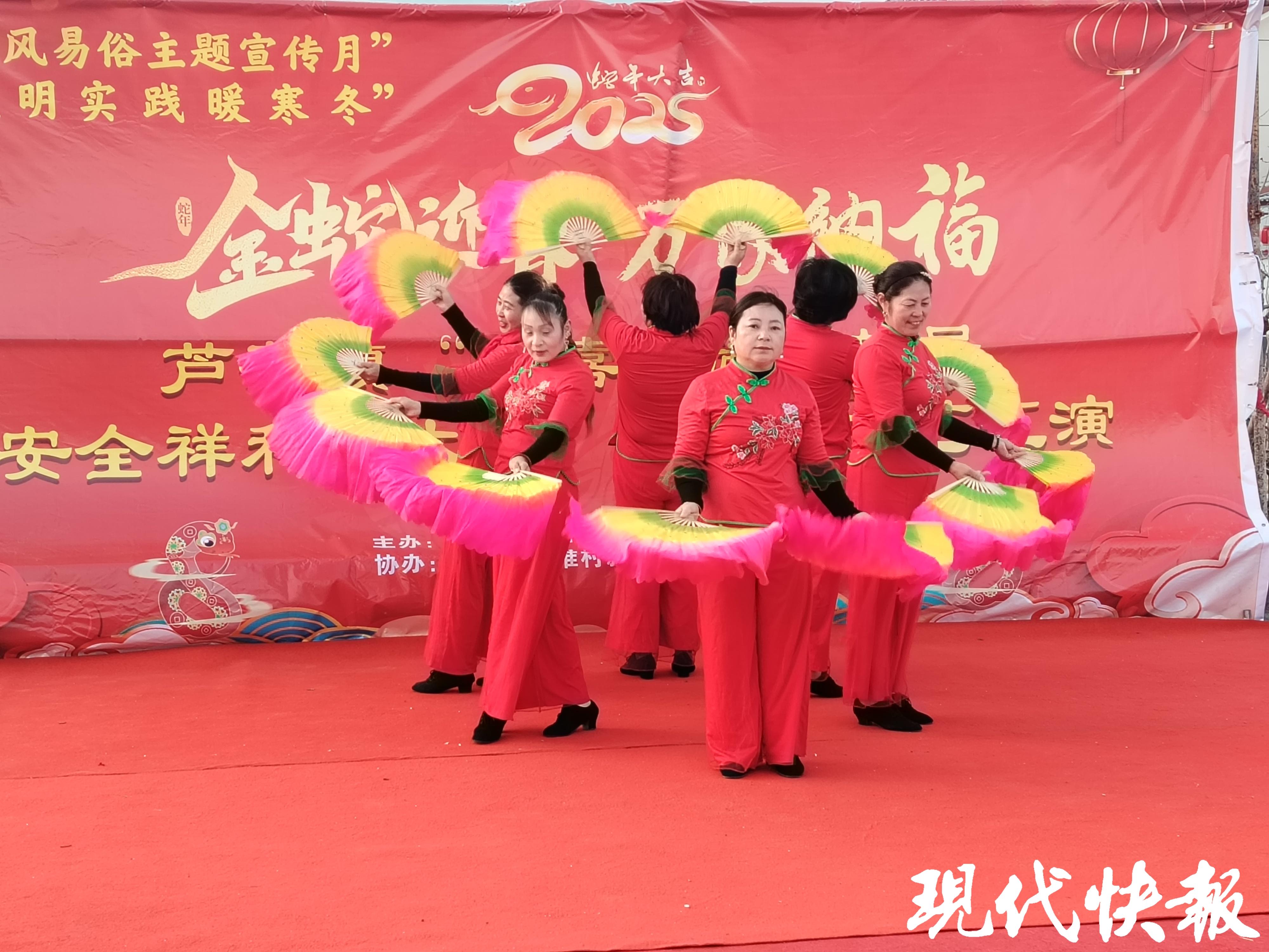 在小区南侧的文艺演出现场,歌伴舞《芦蒲人民唱新歌》,把全镇人民过大年、庆新春的喜庆和欢乐推向高潮,进一步激发了全镇干群干事创业谋发展的热情。小品《移风易俗大家晓》以幽默诙谐的方式,展现了移风易俗的重要性,台下笑声不断。快板《夸夸咱家乡的新面貌》、相声《四老汉搬新居》等十多个节目寓教于乐,让观众尽享文化盛宴。
