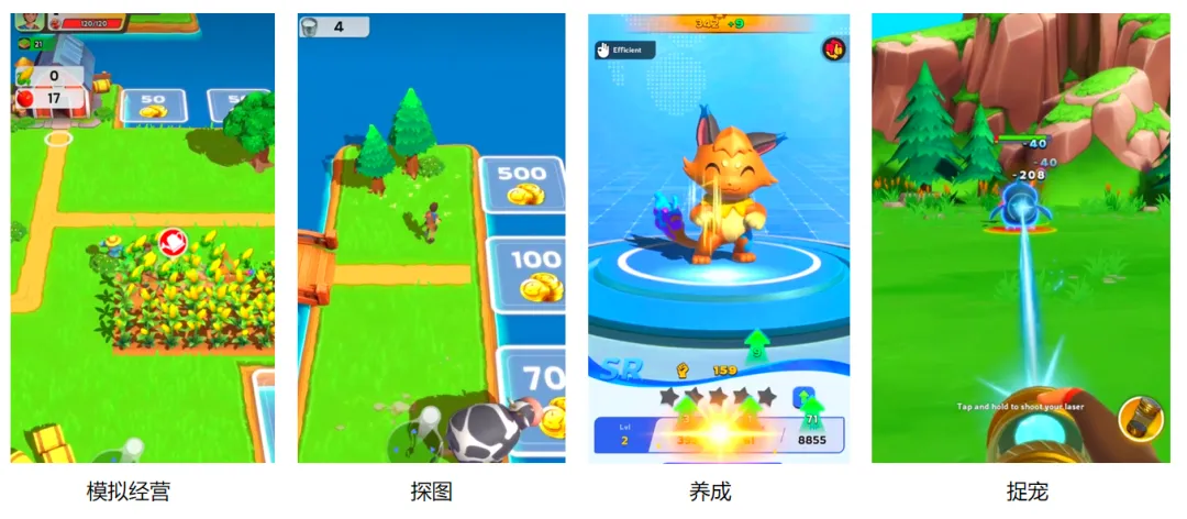 关于第一个方向,主要存在于轻量化SLG产品抑或是小游戏中。其中又可以细化为两种路径,第一种题材包装方向,通过生活化、童趣化的题材来吸引泛娱乐玩家,主打新奇的产品初体验,其中最直接的例子便是各类昆虫题材、海洋题材的SLG产品,例如星河互娱的《Top Fish: Ocean Game》、FunPlus的《Micro Survivor:Tiny World》。第二种是玩法包装方向,在前期玩法上通过当前热门玩法进行包装,例如莉莉丝《Palmon: Survival》的帕鲁+SLG、壳木游戏《Stellar Sanctuary》沙盒建造+SLG等等。