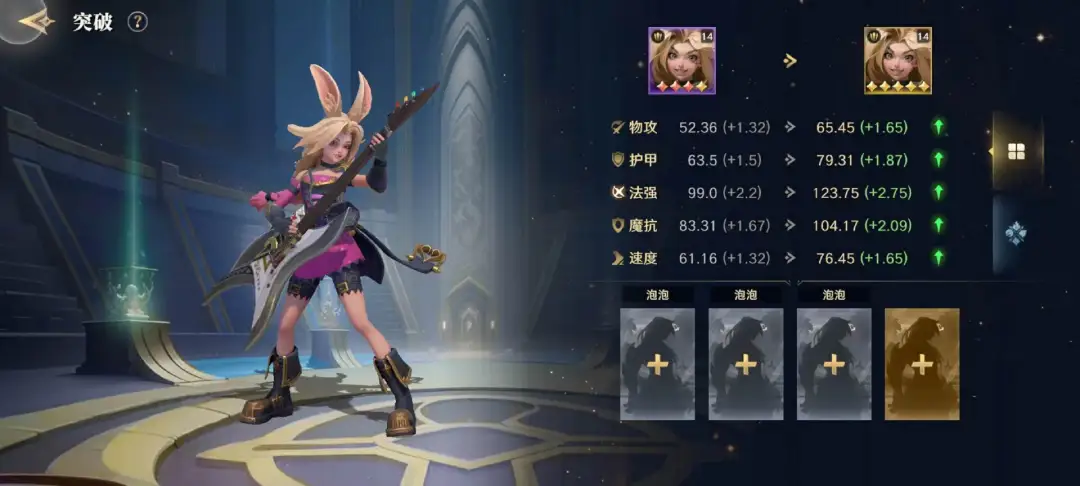 至于这个问题的结果如何,可能还得和第三个问题“降肝减氪”放在一起说。《荒野国度》降肝减氪除了传统意义上的降价,自动铺路外,还有一个非常重要的试探,那就是降低玩家全阵容收集的难度——游戏中每一名英雄都分为数个品级,0R、小R玩家在组建阵容时可以通过下位紫卡来搭配出机制完备的阵容。