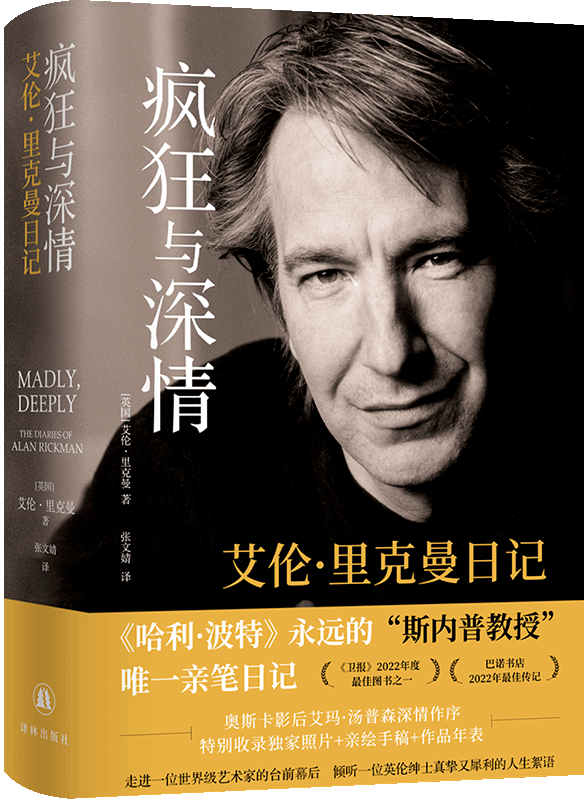 《疯狂与深情:艾伦•里克曼日记》是英国已故演员艾伦•里克曼留给世界的唯一文字记录。他最为我们熟悉的角色是《哈利•波特》系列电影中的斯内普教授。在这场横跨四十余年的内心独白中,我们看到的是一位真实、细腻的英伦绅士,优雅而狡黠,犀利而深情。他会为女演员遭遇的不公正对待挺身而出,也会在深夜里吐露脆弱与伤感;他会和好友打闹嬉笑,也会思考自己与病魔的斗争——然而贯穿整本日记,他最关心的仍然是如何为挚爱的表演事业投入自己全部的疯狂与深情。这本日记展现了一个在日常生活中有血有肉的人,如何度过了专注且富有成就的一生。正如他的挚友艾玛•汤普森所说,在这本日记之外,“世间再无艾伦”。